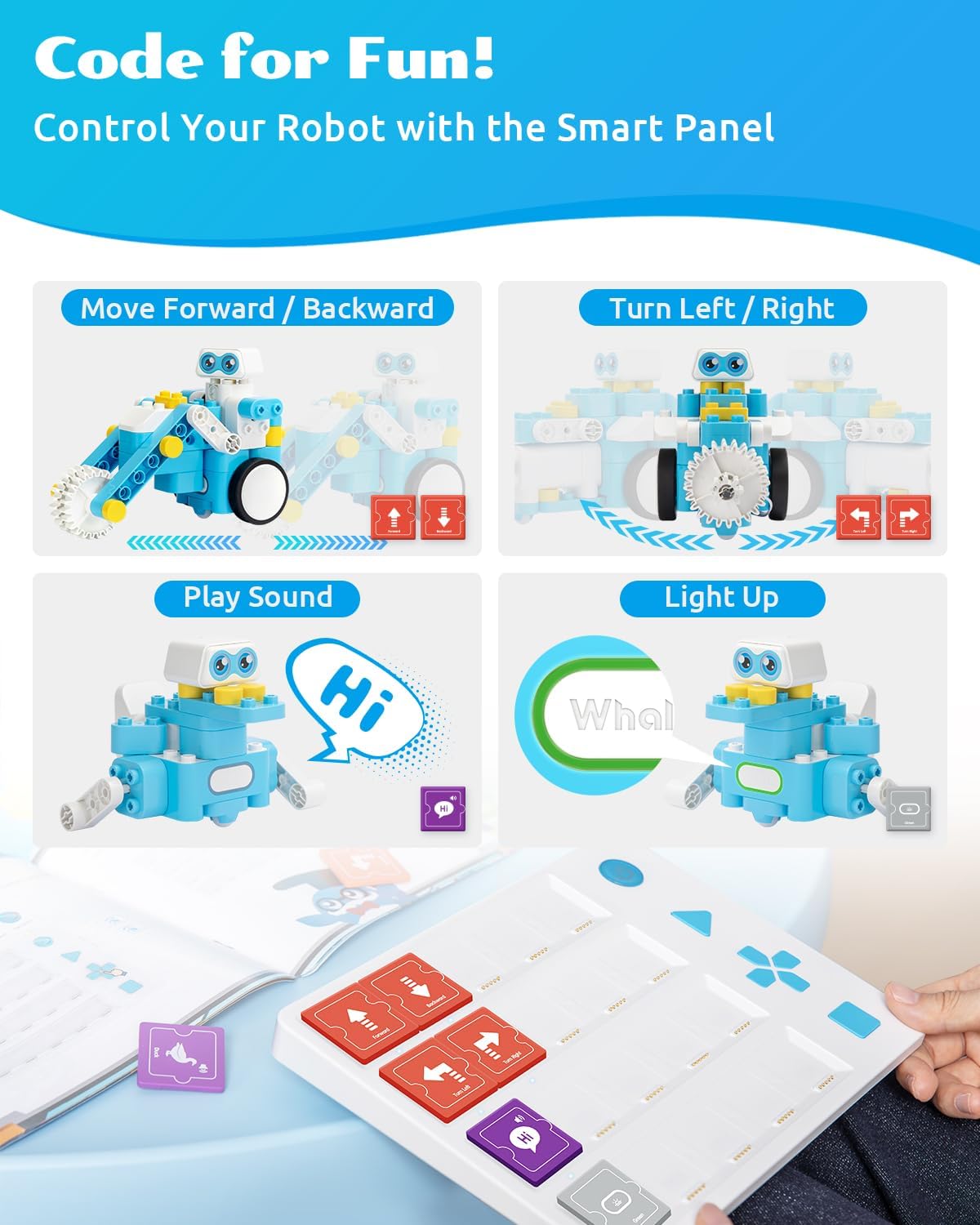 WhalesBot C3 Pro 12-in-1 Remote Control & Coding Robot Kit for Kids 4+, Advanced Smart Panel & Cards Programming, Educational STEM Toy, Block Building Set with Controller & Motor for Kids 4-6, 5-7