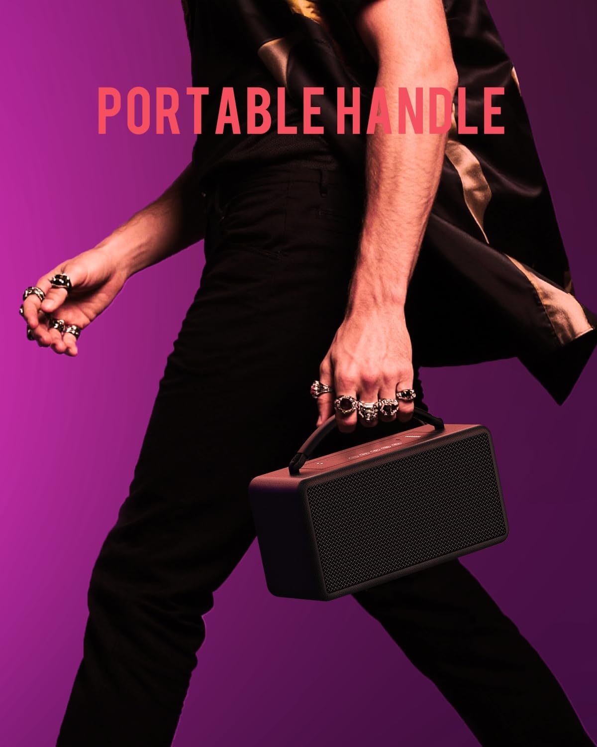 - PORTABLE HANDLE SPEAKER: The woven handle wrapped in silicone is non-slip and firm, so you can carry it with you and keep your music with you. The speaker body with a golden ratio is stylish and durable, which can perfectly decorate your bookshelf and desk. This outdoor bluetooth speakeris an exquisite decoration and a great gift.