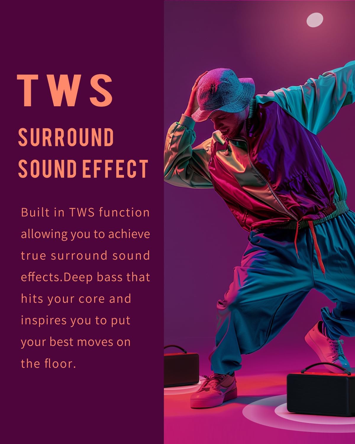- TWS BLUETOOTH 5.3 SPEAKER: This loud bluetooth speaker is equipped with Bluetooth 5.3, which connects faster. It also has TWS pairing technology, allowing you to enjoy 160W surround sound immediately. Whether it is in the garage, backyard, camping or at work, this speakers bluetooth wireless can meet the various scenarios of using speakers in your daily life.