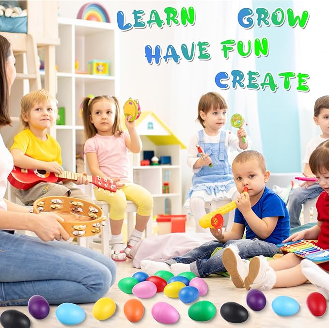 - Ideal Supplies to Learn: playing these egg shakers musical instruments that develop hand eye coordination, and is a fun and easy way to learn the basics of rhythm; Looks about the size of a regular egg and is suitable for a little hand to shake