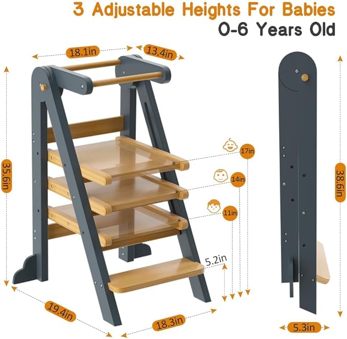 - [3 HIGHT ADJUSTABLE LEARNING TOWER] In order to adapt to the growth of your baby, our toddler step stool is equipped with three adjustable heights. You can always adjust to the perfect height that suits your baby, accompanying your little one every step of the way.