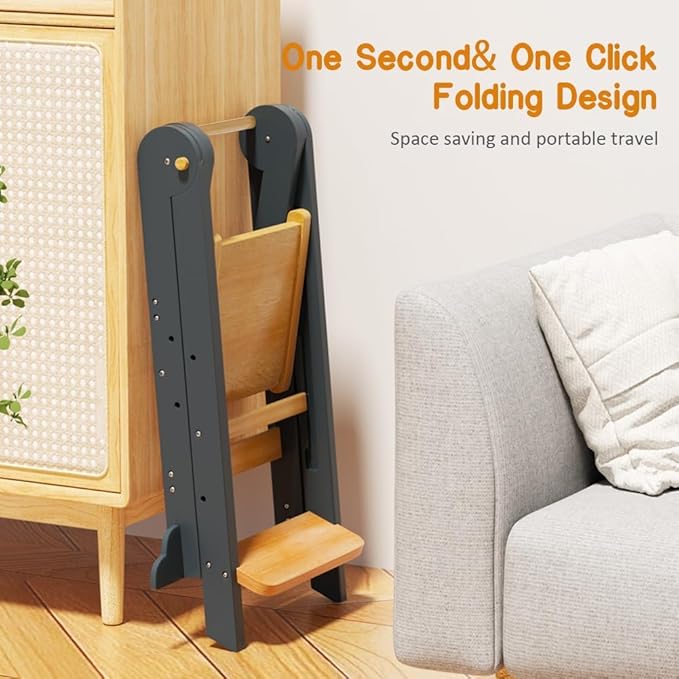 - [EASY TO CLEAN AND STORAGE] We are well aware that taking care of babies is such a huge and complex task, so quick cleaning and assemble is essential, the. The smooth surface is Water-repellent and can be quickly cleaned by simply wiping down with a dry cloth or wet wipe. The folding toddler tower kitchen helper can be folded away in a matter of seconds to save space when not in use.
