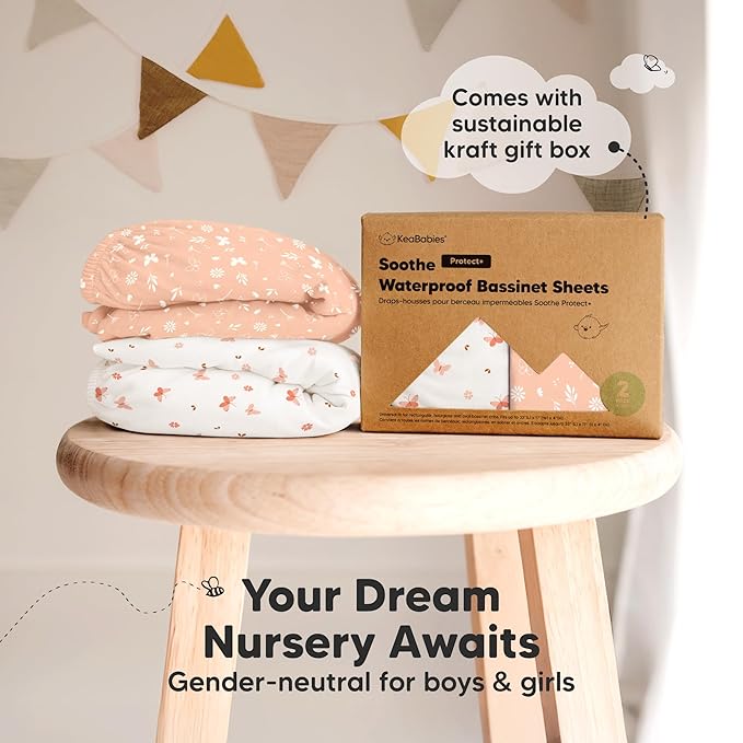 - 2-Pack Waterproof Baby Bassinet Sheets - KeaBabies Soothe Waterproof Bassinet Sheets, sized at 33" x 17" with a depth of up to 4", provide a universal fit for all bassinet mattress pad types. Suitable as hourglass, oval, rectangle bassinet sheets.