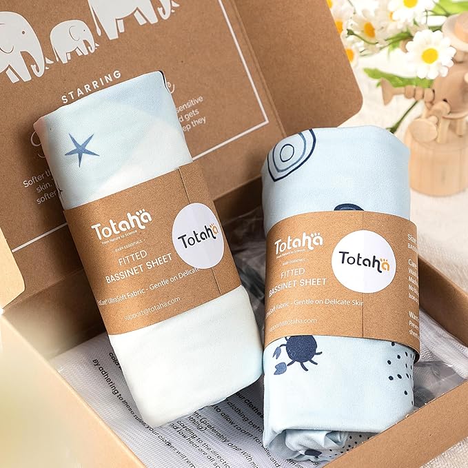 - PERFECT CUSTOM FIT - Every TotAha bassient fitted sheet fits specific models, ensuring a secure and snug fit to your baby's mattress, providing them with the utmost comfort throughout the night. These 33x20 bassinet sheets are designed for Baby Beside Dreamer pad.
