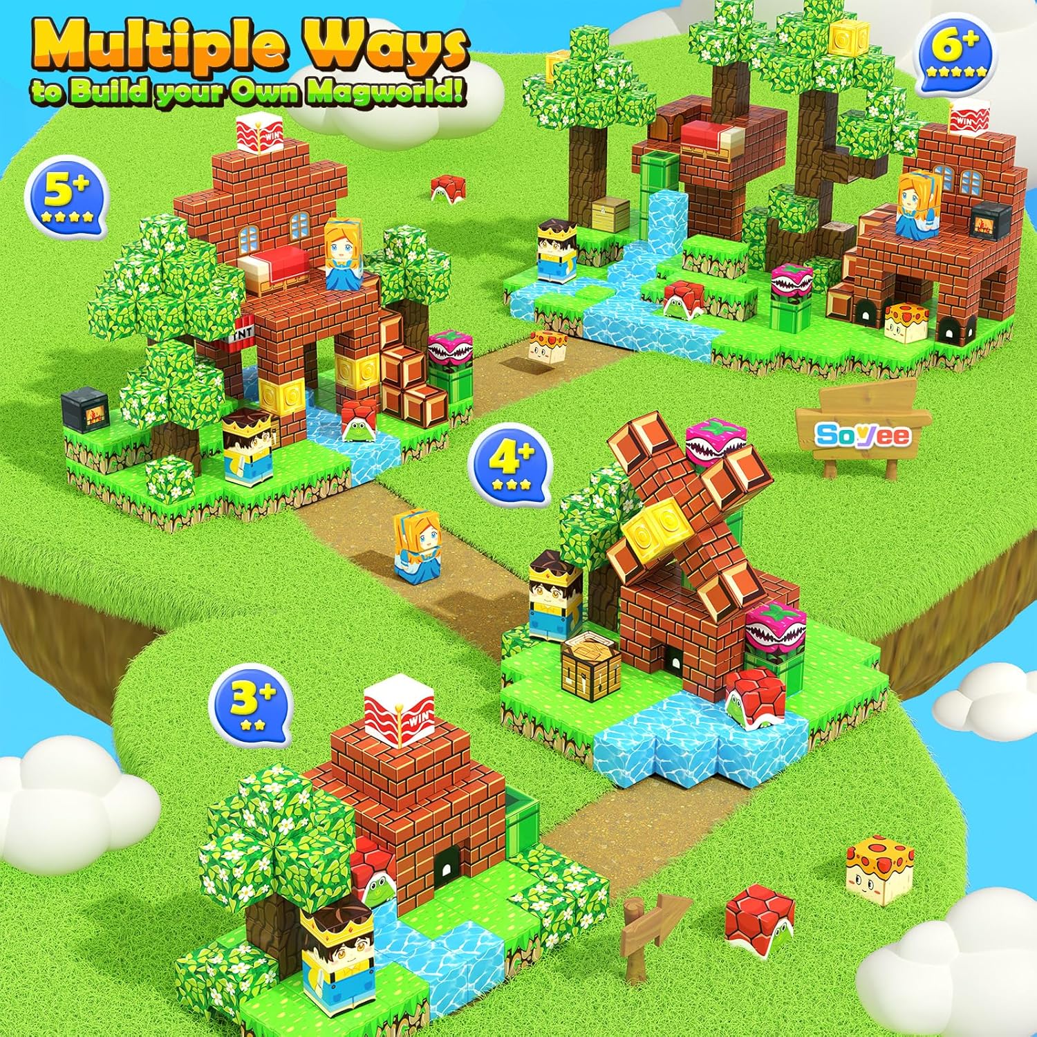 - 120PCS MAGNETIC BLOCKS, BUILD CONFIDENCE: Are you still worried about not having enough building blocks? The magent toy has a total of 120 pieces. Different from other simple elements, in addition to simple flowers, leaves, tree trunks, water, city walls, gold coins, etc., the toys also added new elements such as explosives, furnaces, beds, etc., so kids can have a deeper sense of substitution when playing with toys, and each element is marked with the quantity, so kids can build the shape they want, igniting their sense of accomplishment and self-confidence at any time