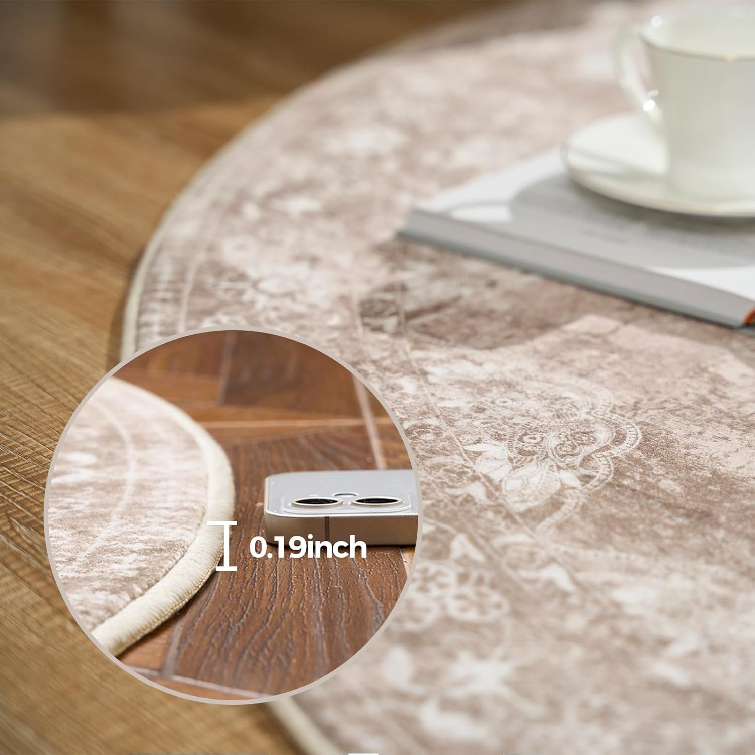 jinchan Round Rug 7ft Area Rug - Brown Vintage Floor Mat Kitchen Indoor - Washable Circle 7' Thin Floral Print Carpet Retro Farmhouse Non Slip Dining Room Living Room Bedroom Office