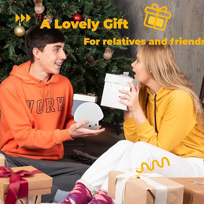 LED Squishy Animal Night Light - 2 Level Dimmable Nursery Lamp for Kids, Rechargeable Touch Lamp, Cute Dorm Decor - Perfect Baby Boys Girls Gift (Cartoon Mushroom)