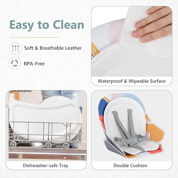 - Easy to Install & Clean: The assembly of this dining chair is very simple. Most parts are connected by buckle-connected. Various modes of transformation are convenient and fast. moreover, the PU cushions and trays are removable for cleaning.