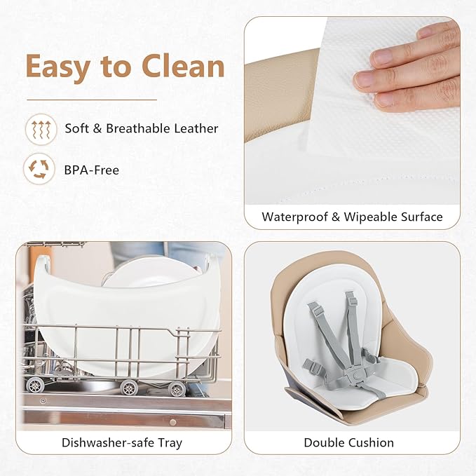 - Easy to Install & Clean: The assembly of this dining chair is very simple. Most parts are connected by buckle-connected. Various modes of transformation are convenient and fast. moreover, the PU cushions and trays are removable for cleaning.