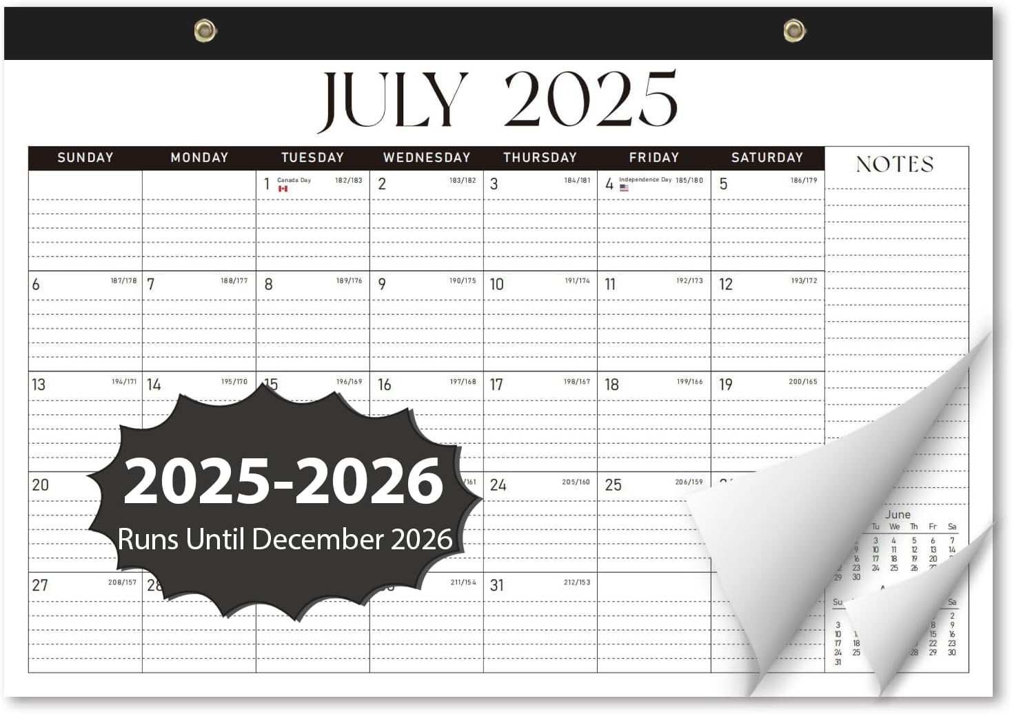 - [PERFECTLY SIZED FOR PLANNING] – Measuring 17" x 12", the 2025-2026 desk calendar offers ample space for notes, appointments, and reminders while fitting neatly on your desk or wall. A dedicated notes section helps keep memos, goals, and to-do lists organized in one place.