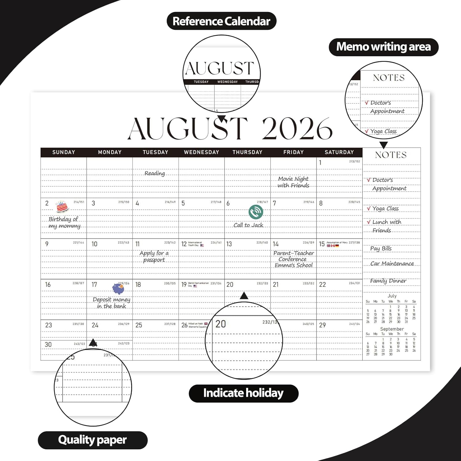 - [HIGH-QUALITY PAPER] – Crafted with high-quality, bleed-resistant paper, this desk calendar for 2025-2026 ensures smooth writing with any pen or marker. Whether jotting down quick memos or outlining detailed plans, your notes will stay neat, organized, and professional.Our calendar is printed on FSC-certified wood-based paper.
