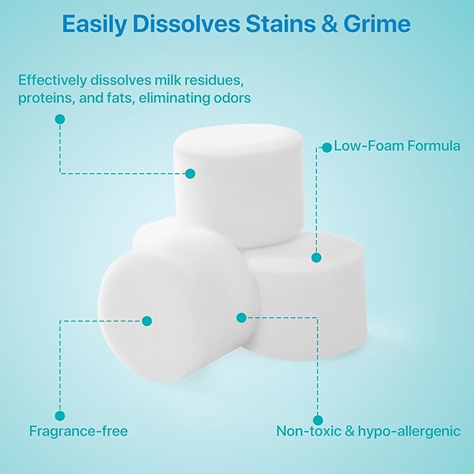 - Enhanced Cleaning Capability: These tablets are expertly formulated to eliminate stubborn milk residue, stains, and odors effortlessly.
