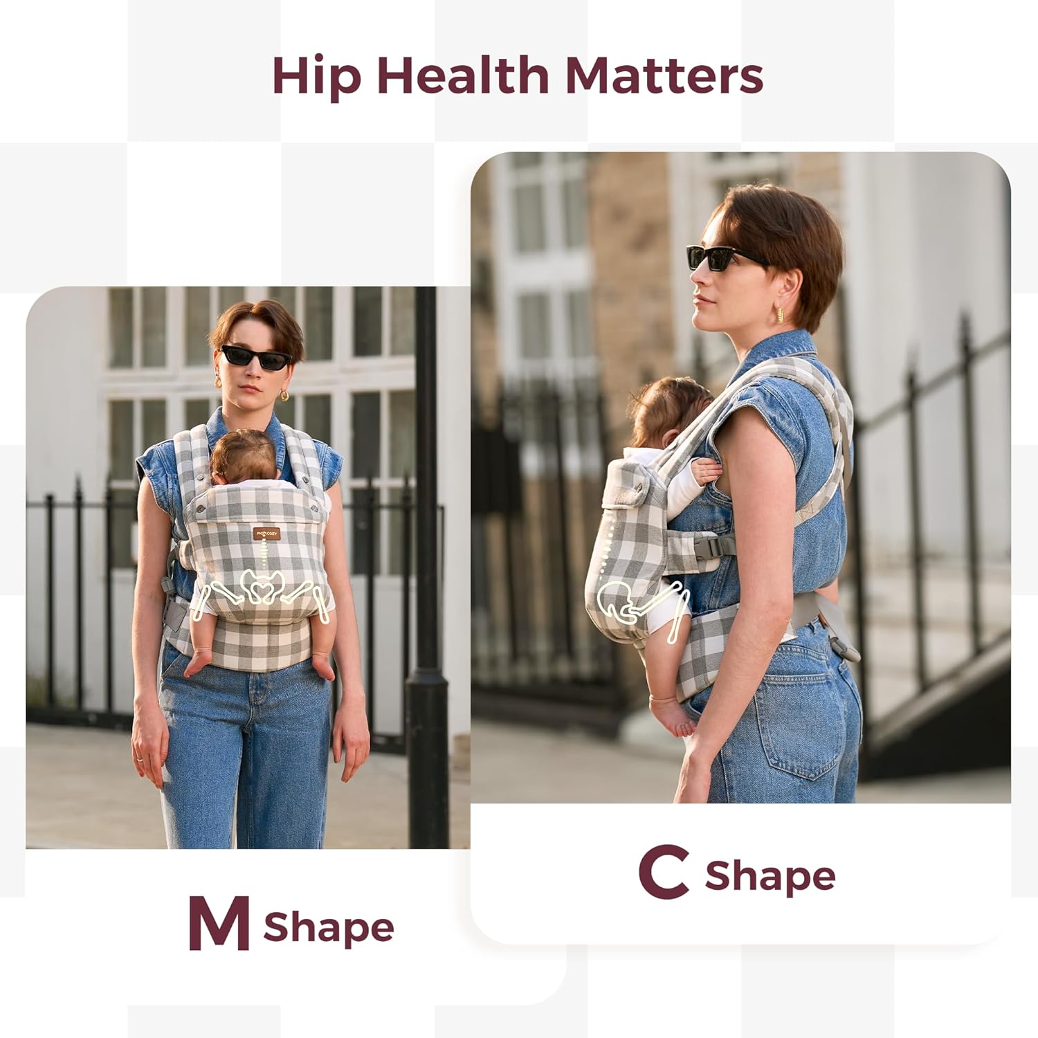 Momcozy Baby Carrier with Natural Cotton Linen, Built to Last, Ergonomic Design, Lightweight and Comfortable, Hands-Free for Moms&Dads, Slate Checkerboard