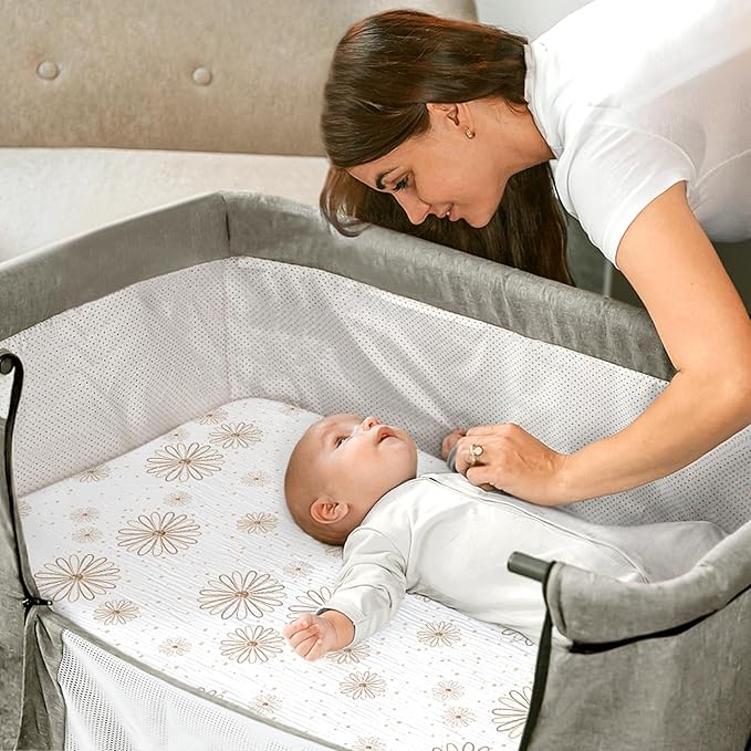 - Flexible Fitted: Our bedside sleeper sheets sized at 33" x 21" x 4" with elastic edges to securely fit most bassinet mattresses (29”-33” long, 17”-21” wide and 1”-2” thick). These bassinet sheets fitted for Maxi Cosi lora, Angelbliss, Baby Delight Beside me Dreamer Bassinet, and other similar-sized brands.