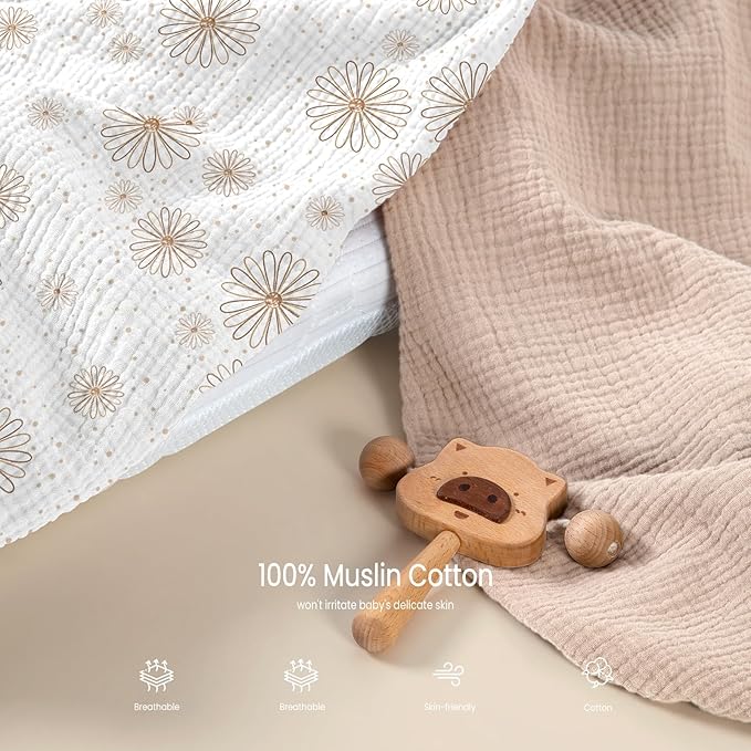 - Soft and Breathable: Our bassinet sheets are crafted from 100% muslin cotton, a gentle material that is safer for your baby's sensitive skin, providing a cozy environment for your baby.