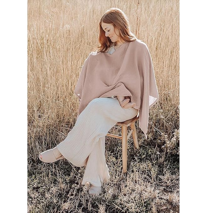 Konssy Muslin Nursing Cover for Breastfeeding, 360° Full Privacy Breathable 100% Cotton Breastfeeding Cover, Multi-use
