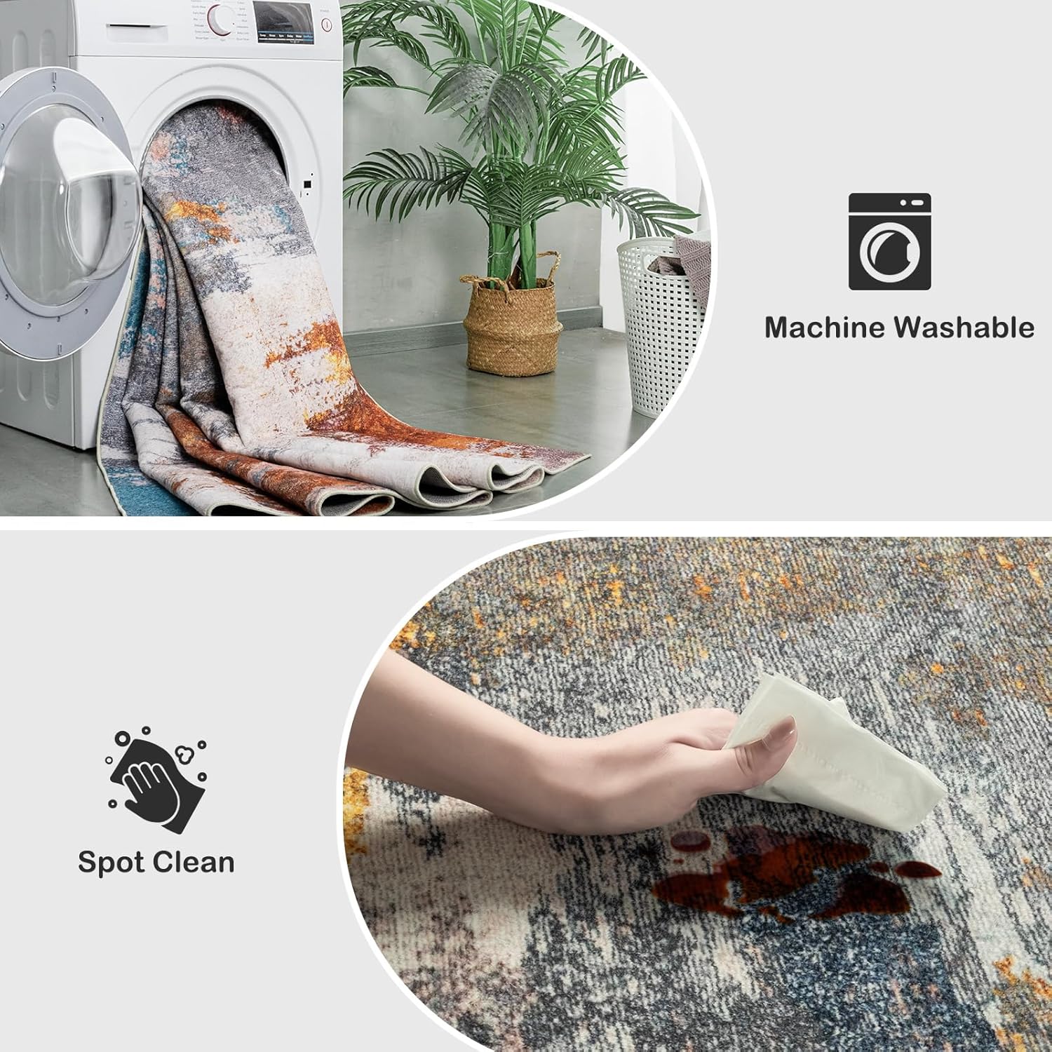 - Machine Washable Area Rugs:Modern abstract print rugs can be machine washed, vacuumed, and cleaned with a broom or rag. Keep this easily washable carpet looking fresh daily with a vacuum cleaner or a swift wipe, and the innovative one-piece machine washable rug makes cleaning your home easier