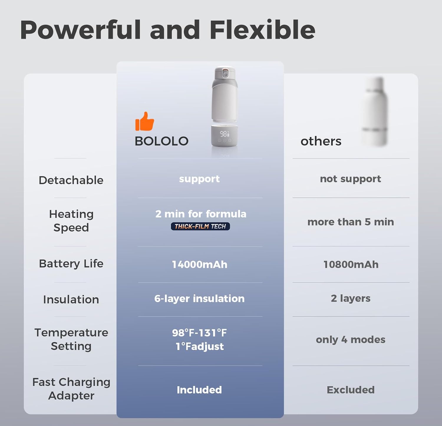 - What You Get: BOLOLO portable milk warmer pro, 30w qucik charger, tyep-c cable, user manual, our worry-free 1-year warranty, and friendly customer service.