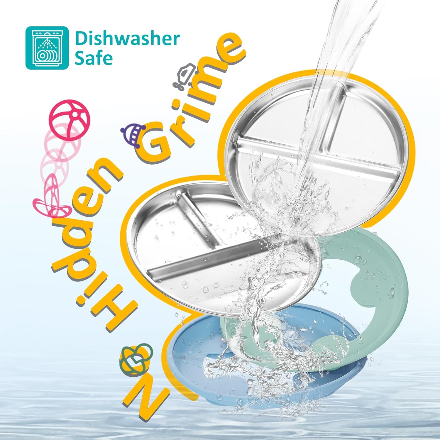 - Hassle-Free Cleaning: Resistant to food stains like carrots, the smooth stainless steel surface is easy to clean. Both the toddler plate and silicone suction sleeve are dishwasher-safe, making cleanup quick and stress-free for busy parents