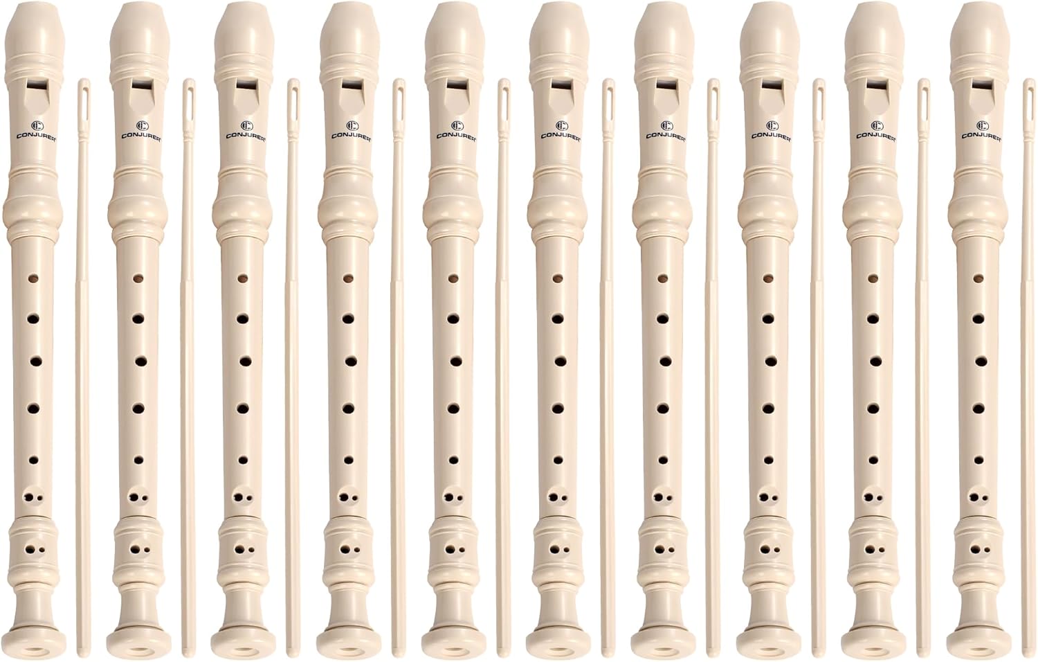 CONJURER 10Pc Soprano Recorder Instrument for Kids Student - German Fingering 8 Hole Flute ABS Descant Recorders for Beginners with Cleaning Rod and Bag for Kids over 3 Years Old