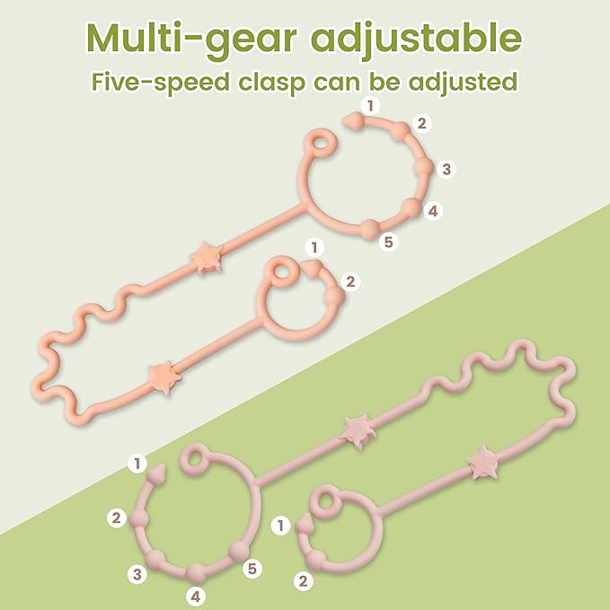 - Heat-Resistant and Easy to Clean: Made of food-grade, heat-resistant silicone, our toy straps for baby are easy to wash in water or put in a dishwasher or sterilizer for cleaning. If our products have any quality problems, please contact us in time, we will solve the problem for you within 24 hours on working days.
