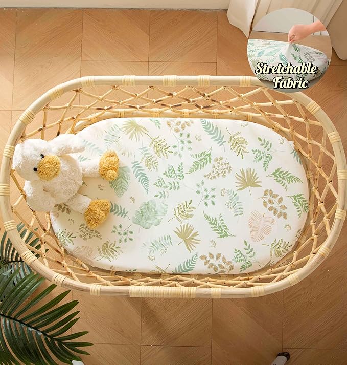 SDY 2PK Bassinet Sheets Girls Boys,Soft Microfiber Jersey Baby Bassinet Bedding 32"x16" x4" Fit Hourglass Oval Rectangle Mattress (Natural Leaves)