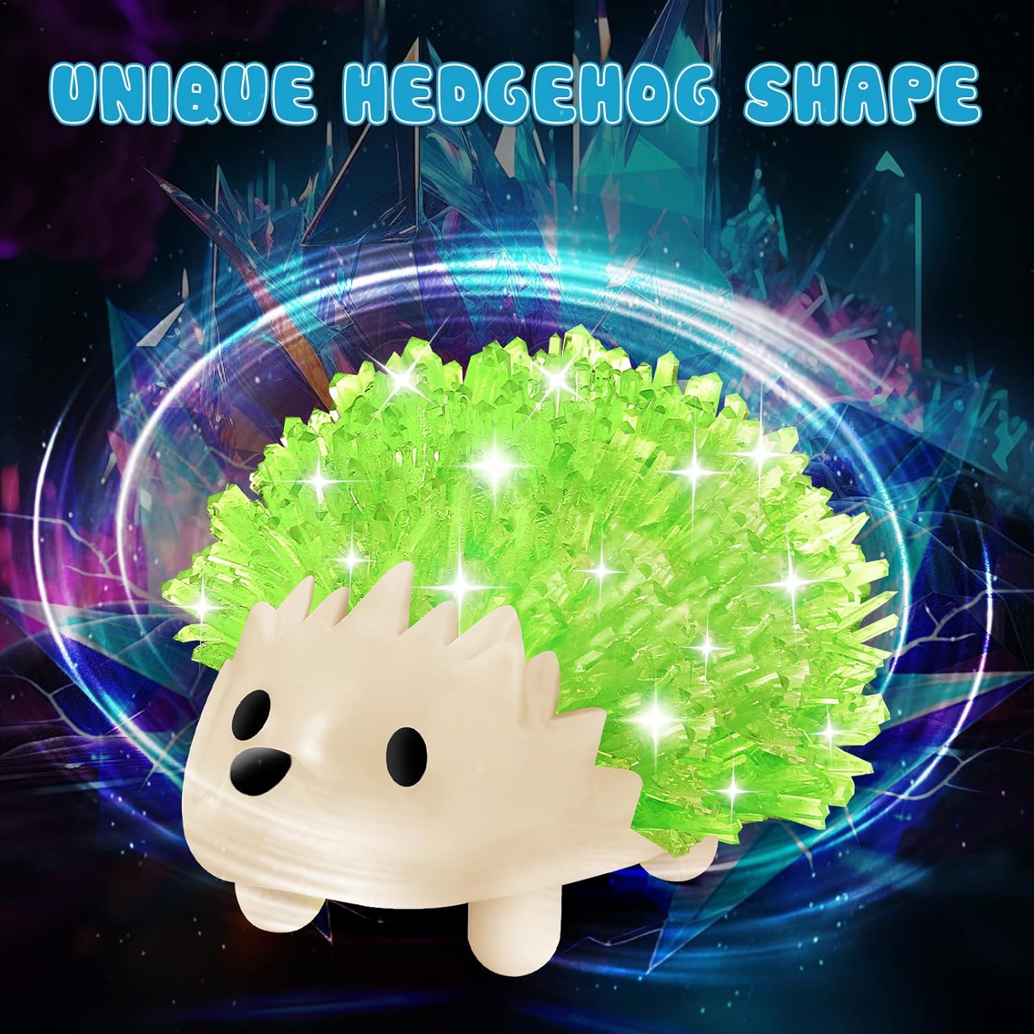 - 3 Colors hedgehog Crystal Growing Kit: This science kits for kids contains fast growing Blue、Green and Red Crystal,3 cute Hedgehog Models,3 plastic container,3 stirring sticks,1 instruction.Let your kids have fun with chemistry