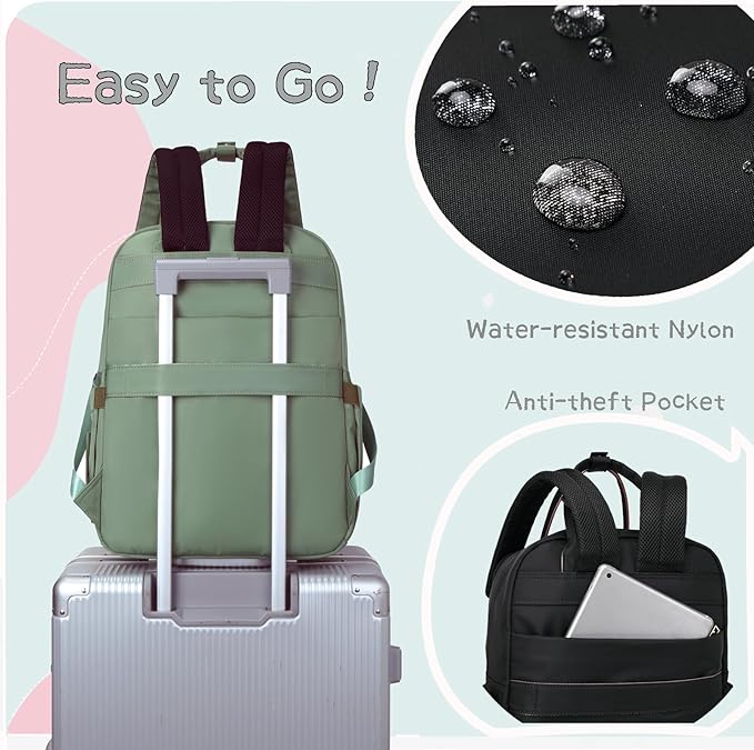 - Large Capacity for Travel: Length: 12.5 inches, Width: 8.5 inches, Height: 17 inches, Total 18 Pockets with plenty of room to carry your all items and mommy stuff: newborn bibs, cloth diapers, medicine, formula, 15.6 inches laptop and breast bump, perfect for travel