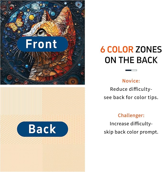 - Color-Coded Back Design: The puzzle’s back is divided into six colored zones to help beginners get started with ease and allow seasoned puzzlers to sort and complete more efficiently