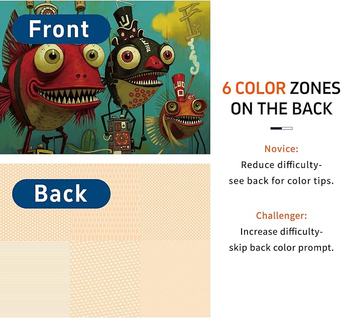 - Beginner-Friendly Layout: The back of the puzzle is divided into six color-coded sections, designed to help new puzzlers start with ease and improve their confidence and completion speed