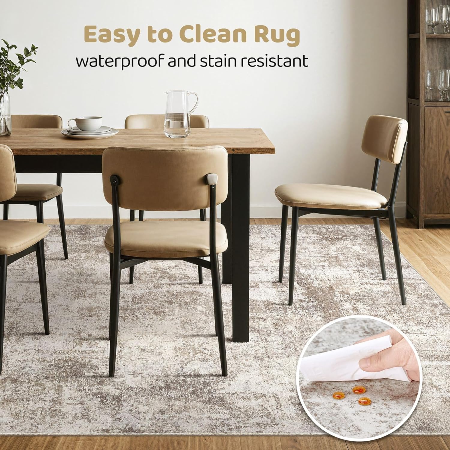 5x7 Area Rugs Living Room: Washable Large Abstract Soft Rug Stain Resistant Indoor Floor Non-Slip Accent Carpet for Women Modern Home Enthusiasts Aged 25-45 - Bedroom Nursery Playroom- Beige Brown
