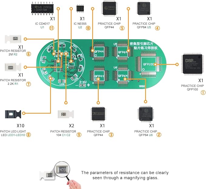 - SUPER PACK: This Circular Red LED SMD soldering practice kit includes welding exercise board, 11 kinds of, 21 pieces of electronic SMD components. Great electronic soldering project kit for you.