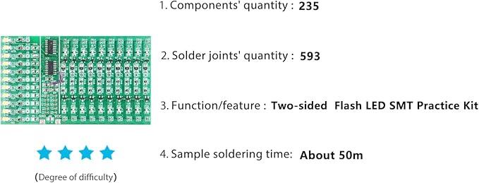 - SUPER PACK: This Two-sided SMT 3-row White Red LED soldering practice kit includes welding exercise board, 14 kinds of, 235 pieces of electronic SMD components.