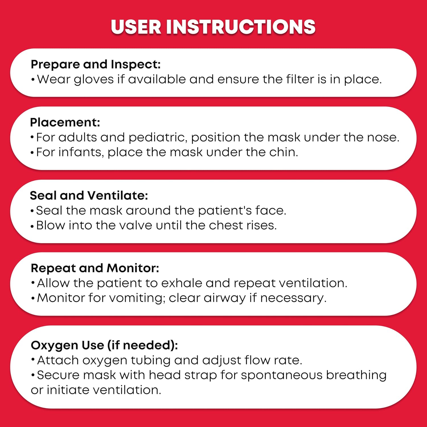 - PREMIUM QUALITY & USER-FRIENDLY DESIGN – Features a secure one-way filter valve for maximum safety, along with an elastic, latex-free head strap for a hands-free, secure fit during resuscitation.