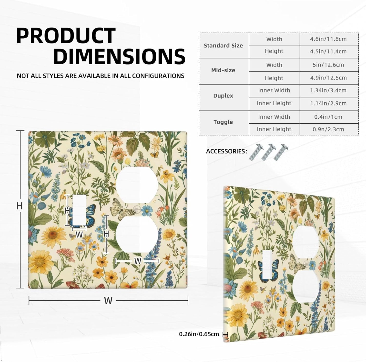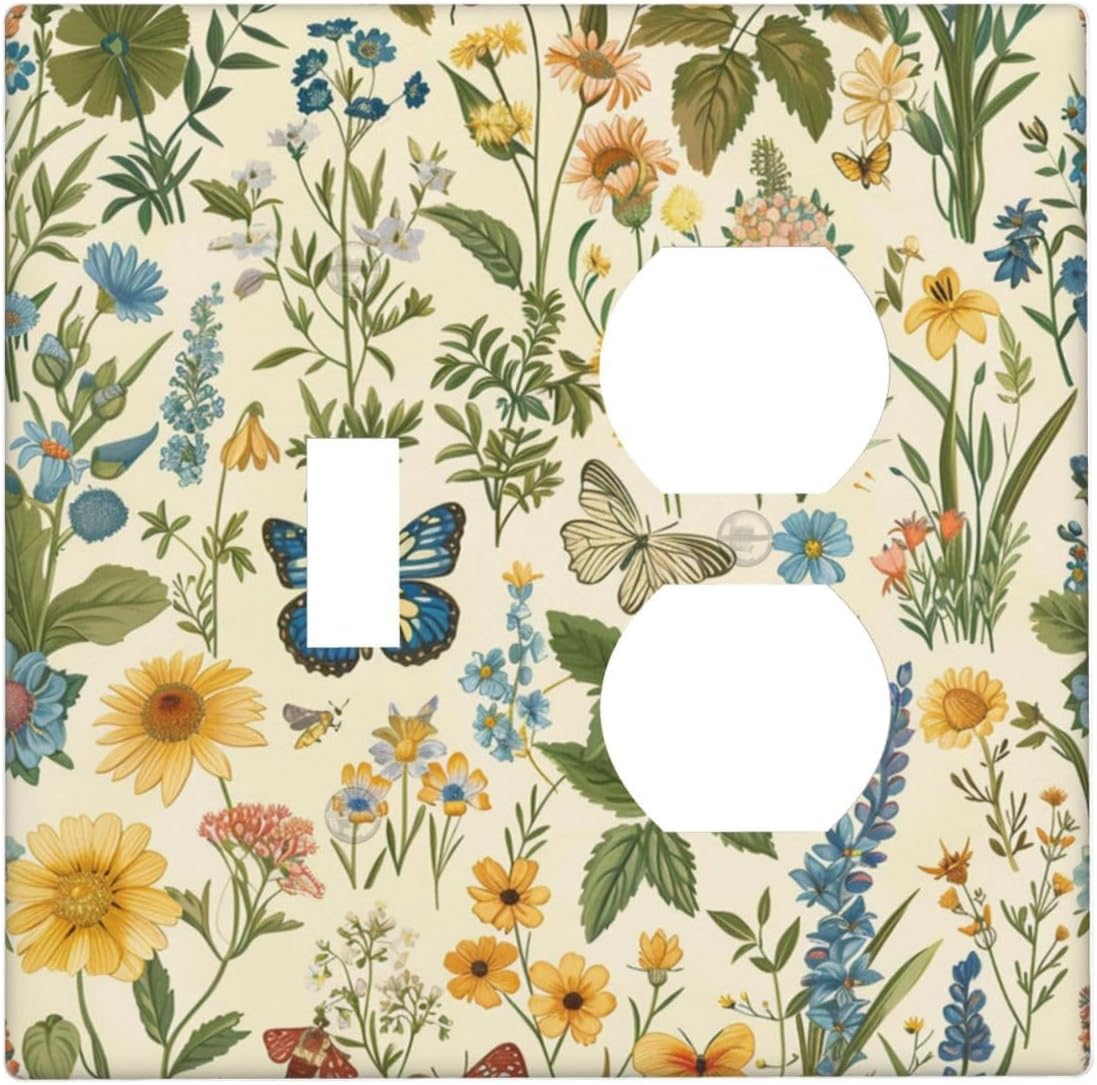 Decorative Outlet Covers Rustic Plant Garden Leaf Flower Butterfly 2 Gang Wall Plate Cover Single Toggle Duplex Combo Two Switch Light Switch Cover Plate Jumbo Dual GFCI Faceplate