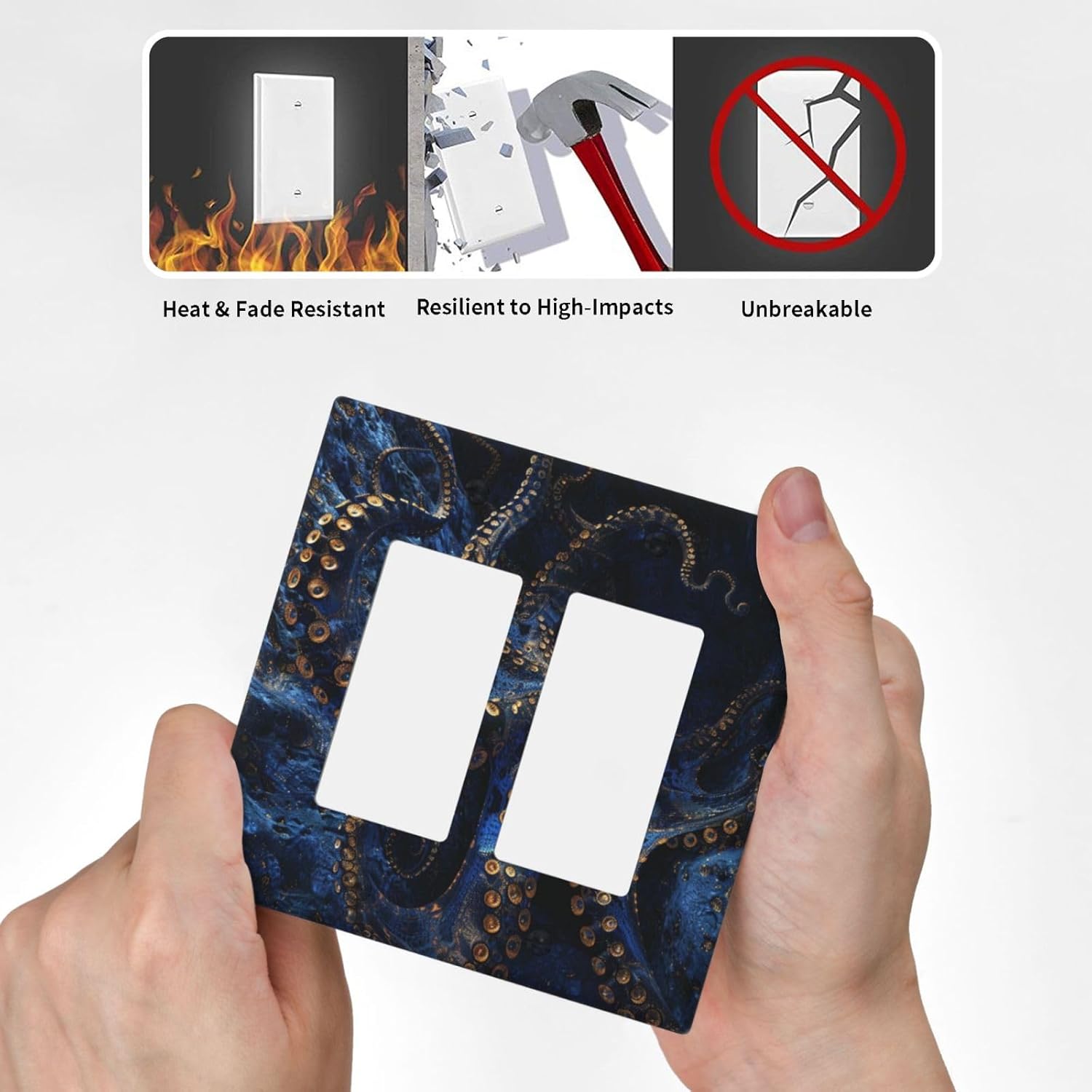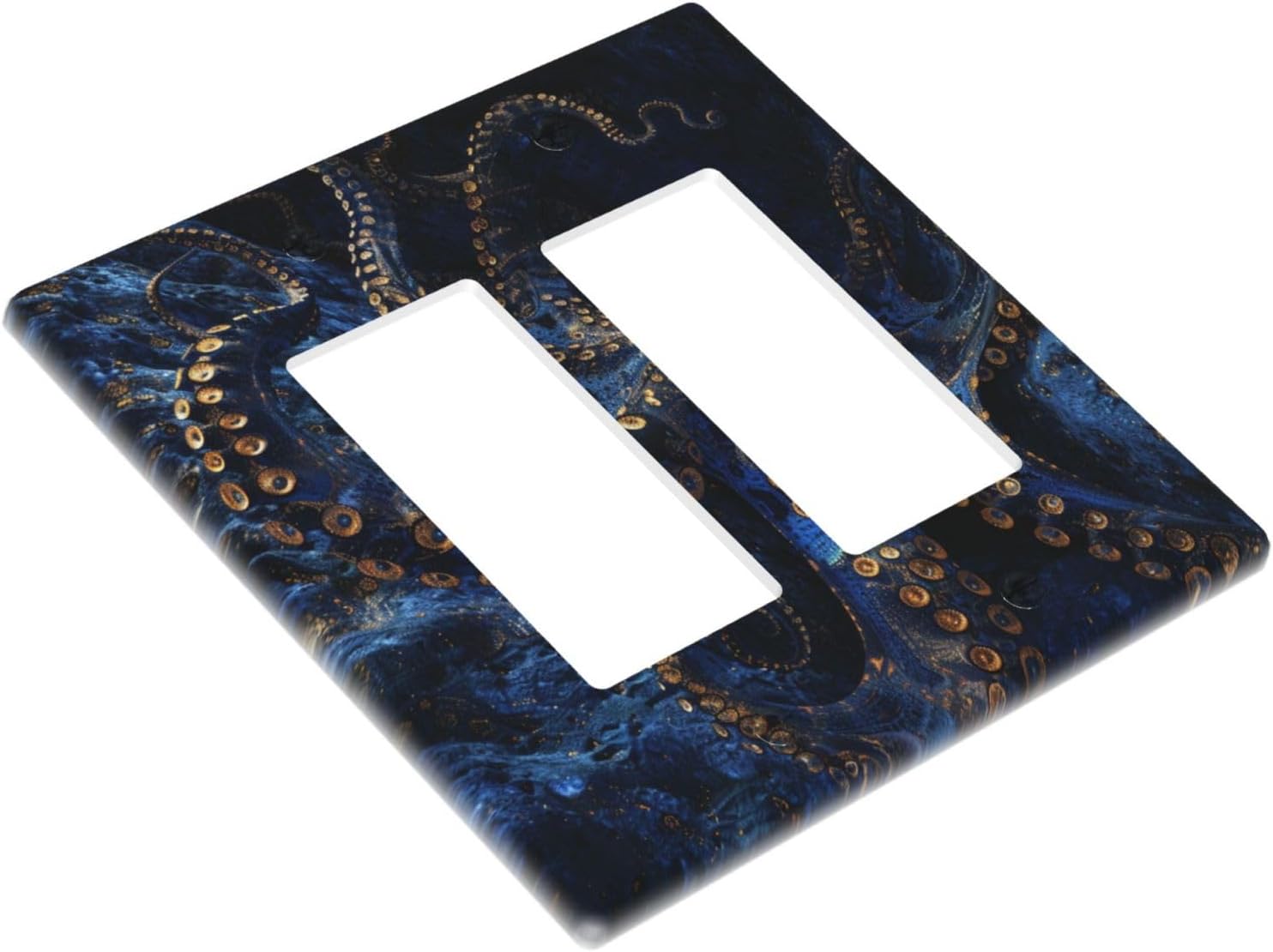 Decorative Outlet Covers Horror Night Blue Ocean Evil Octopus 2 Gang Wall Plate Double Rocker Two Switch Wall Cover Plate Light Switch Cover Plate Faceplate for Bathroom Home Decor