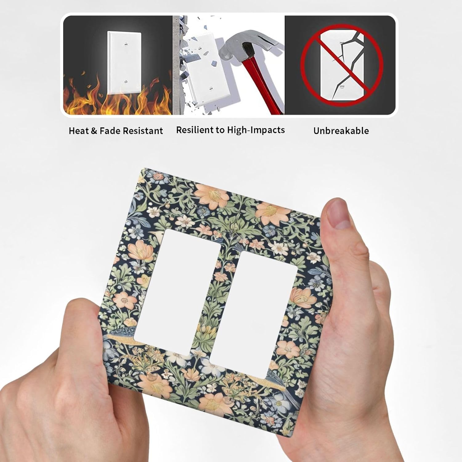 Decorative Outlet Covers Rustic Morris Birds Green Leaf Flower 2 Gang Wall Plate Double Rocker Two Switch Wall Cover Plate Light Switch Cover Plate Faceplate for Country Bedroom Decor