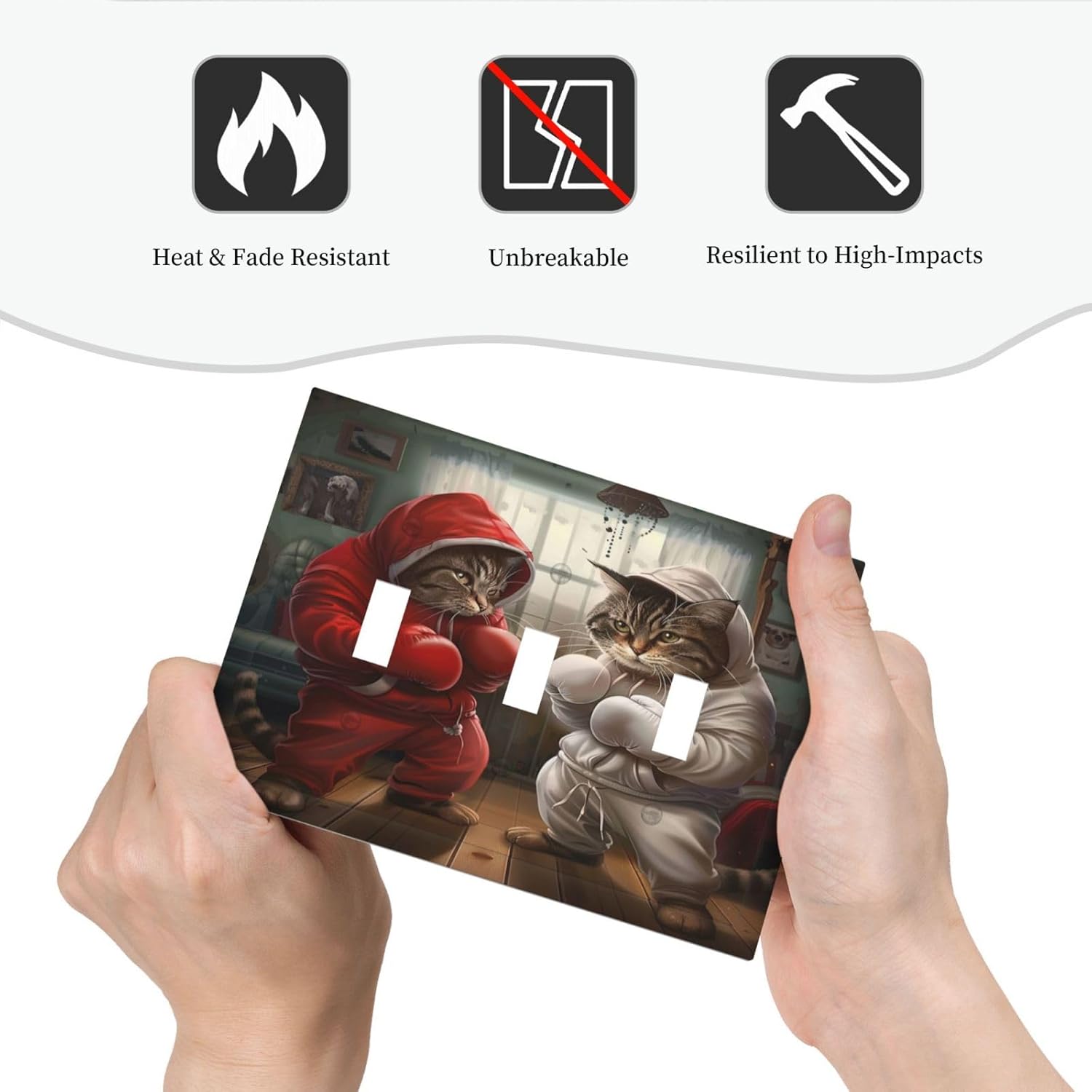 Decorative Switch Covers Plate Funny Red Boxing Cats White Tomcat 3 Gang Artistic Wall Plate Unique Triple Toggle Light Switch Plate Jumbo Faceplate for Bedroom Home Decor