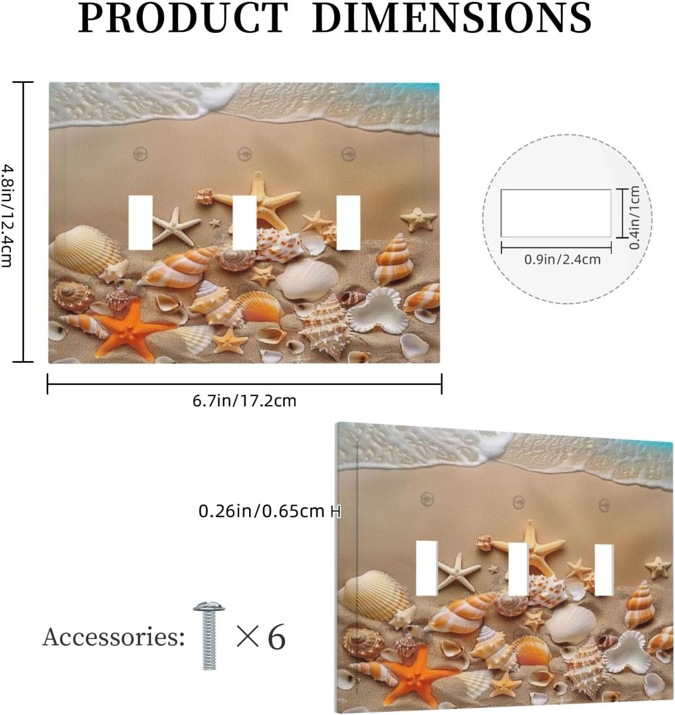 Decorative Switch Covers Plate Beachy Sea Ocean Seashell Starfish 3 Gang Artistic Wall Plate Unique Triple Toggle Light Switch Plate Jumbo Faceplate for Bathroom Bedroom Home Decor