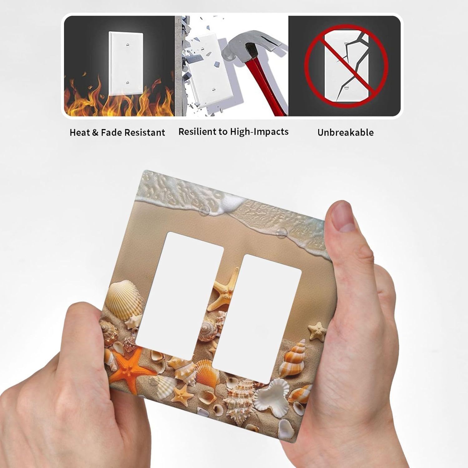 Decorative Outlet Covers Beachy Sea Ocean Seashell Starfish 2 Gang Wall Plate Double Rocker Two Switch Wall Cover Plate Light Switch Cover Plate Faceplate for Bedroom Home Decor