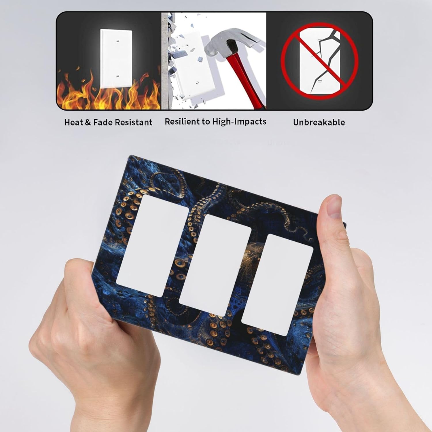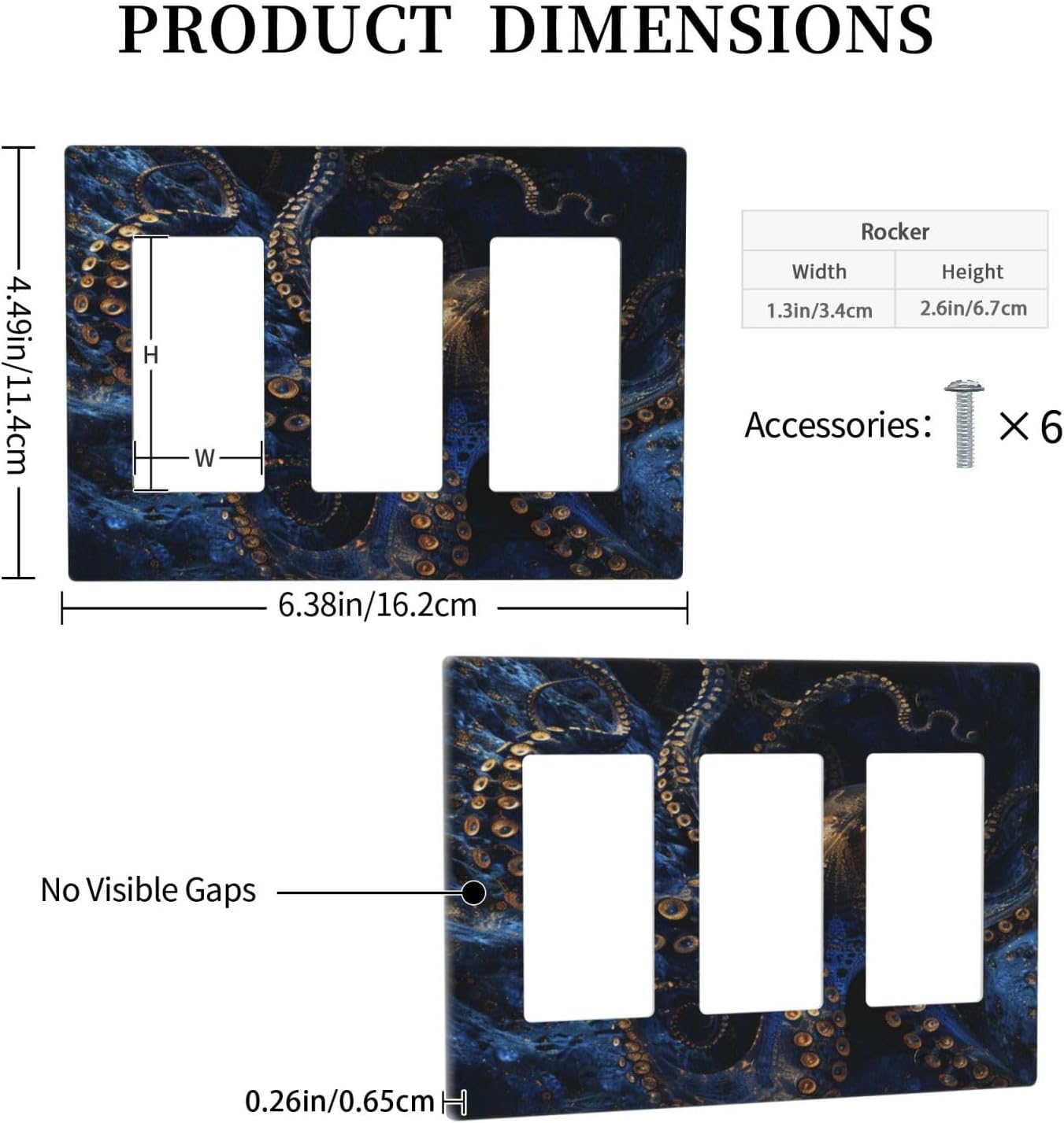 Decorative Outlet Covers Horror Night Blue Ocean Evil Octopus 3 Gang Wall Plate Triple Rocker Light Switch Cover Plate Jumbo Electrical GFCI Faceplate for Bathroom Home Decor