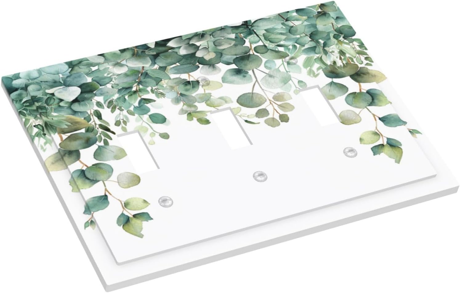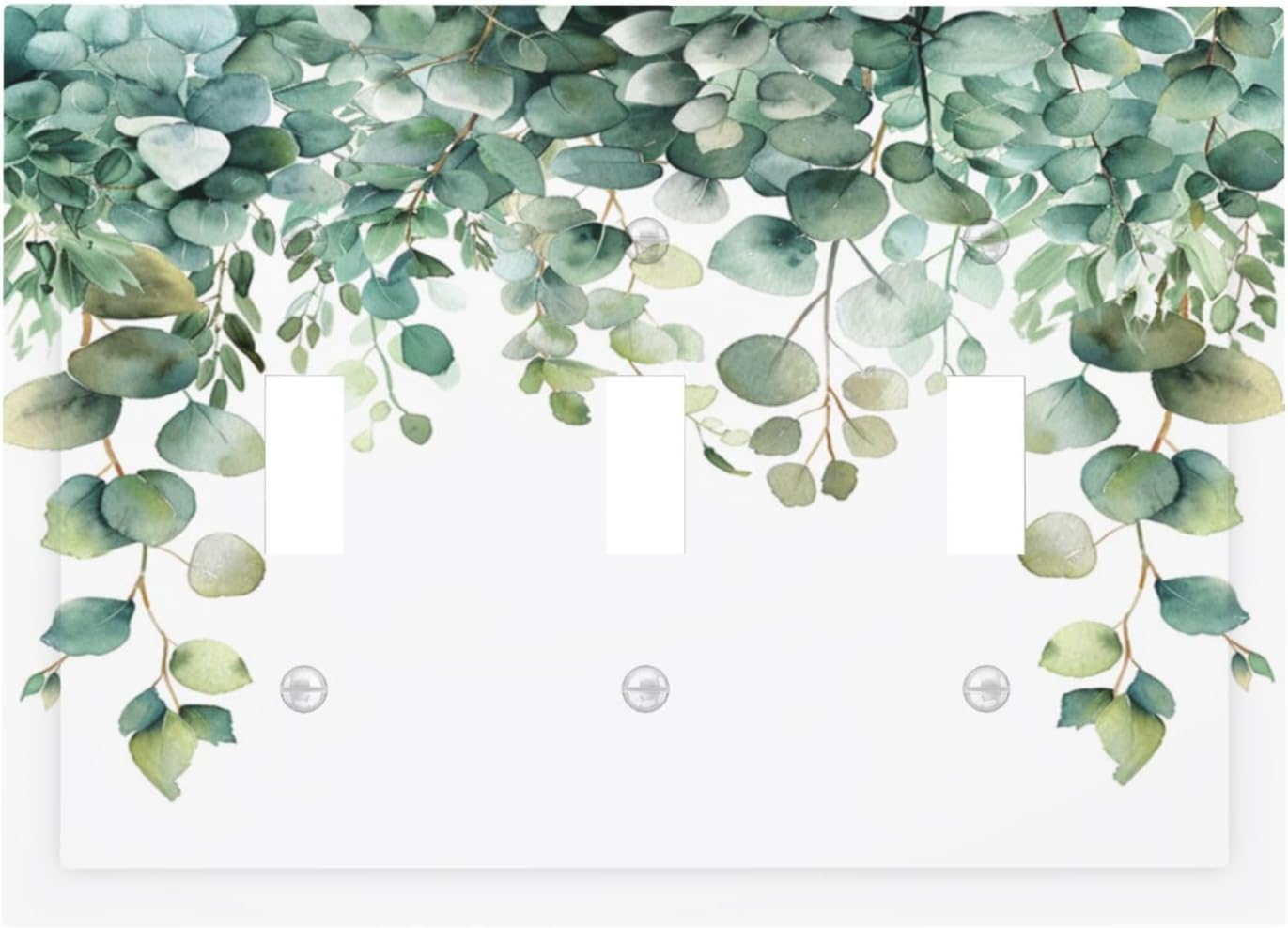 Decorative Switch Covers Plate Rustic Green Eucalyptus Leaves 3 Gang Artistic Wall Plate Unique Triple Toggle Light Switch Plate Jumbo Faceplate for Country Bedroom Kitchen Home Decor