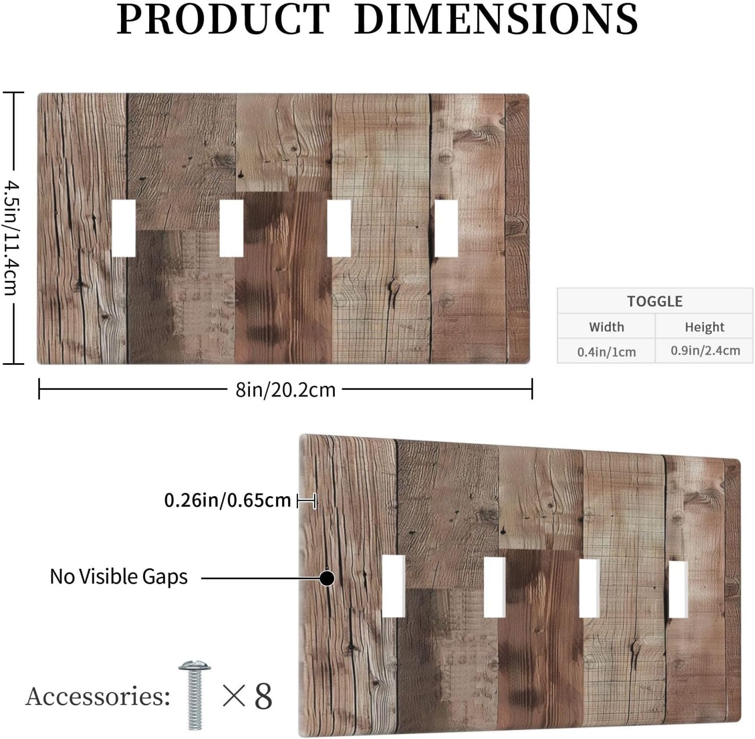 Decorative Switch Covers Plate Retro Wood Plank Vintaga Wooden Board Cabin 4 Gang Artistic Wall Plate Unique Quad Toggle Light Switch Plate Jumbo Faceplate for Bedroom Home Decor