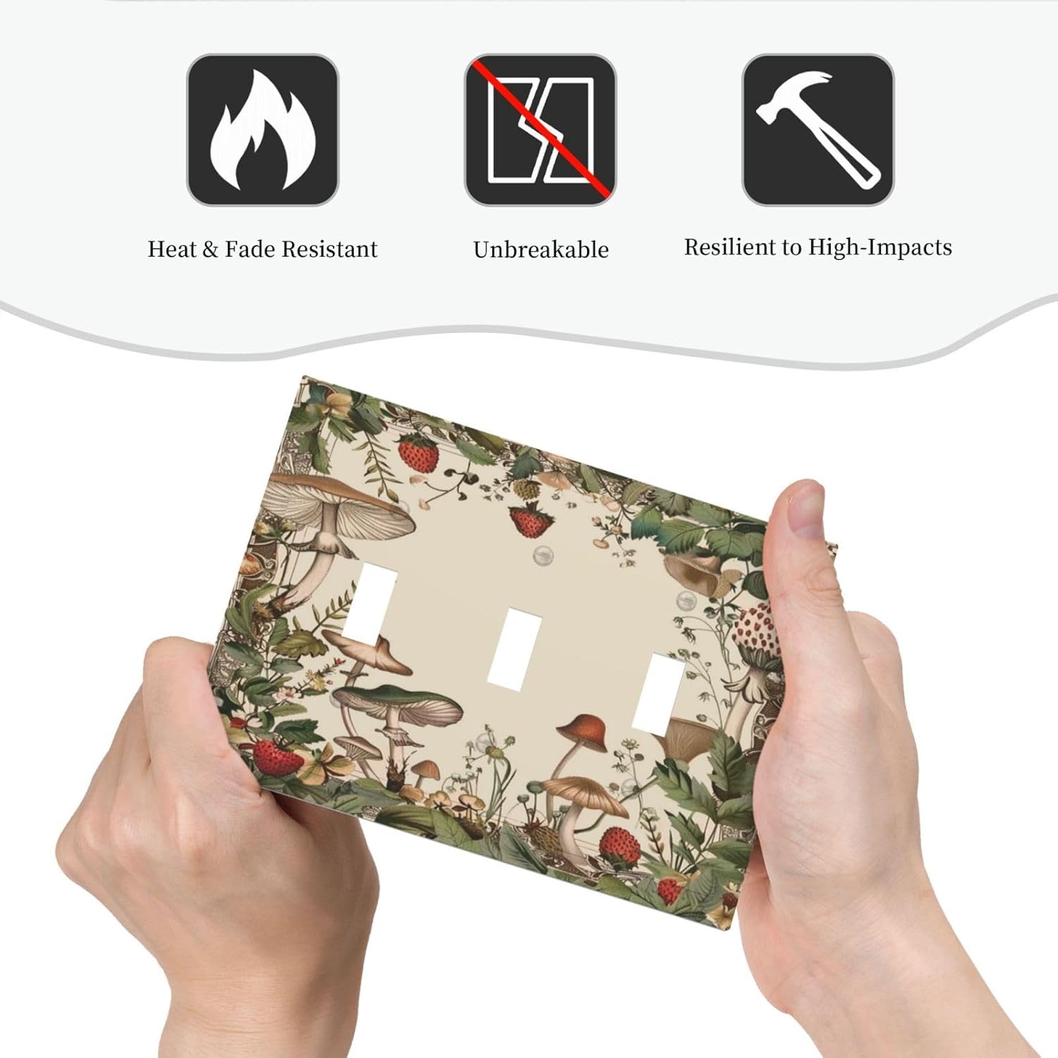 Decorative Switch Covers Plate Rustic Mushroom Garden Red Strawberry 3 Gang Artistic Wall Plate Unique Triple Toggle Light Switch Plate Jumbo Faceplate for Bedroom Home Decor