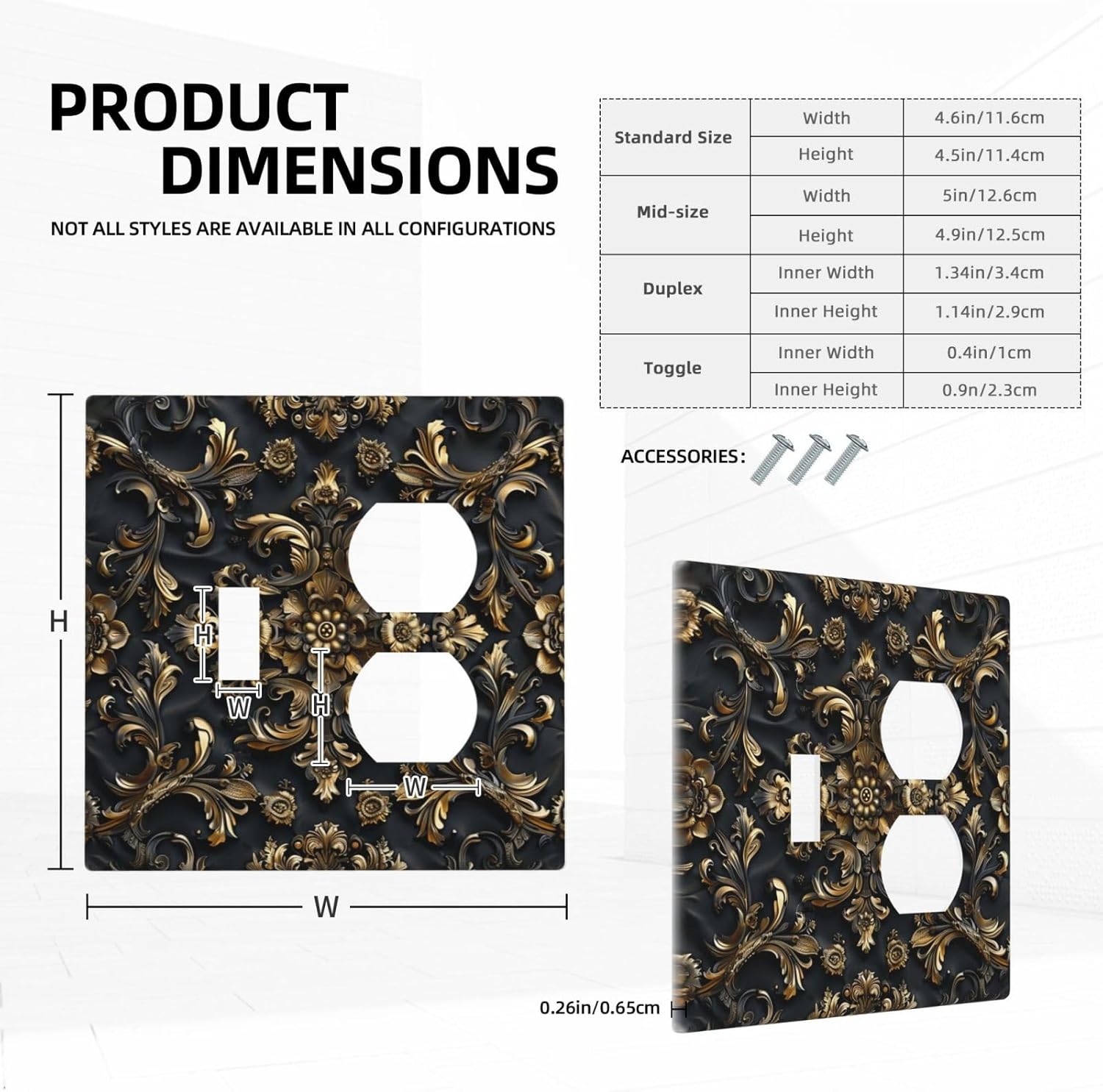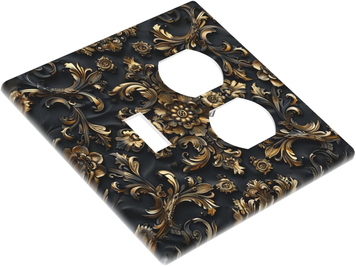 Decorative Outlet Covers Rococo Vintage Black Golden Leaf Morris Vine 2 Gang Wall Plate Cover Single Toggle Duplex Combo Two Switch Light Switch Cover Plate Jumbo Dual GFCI Faceplate