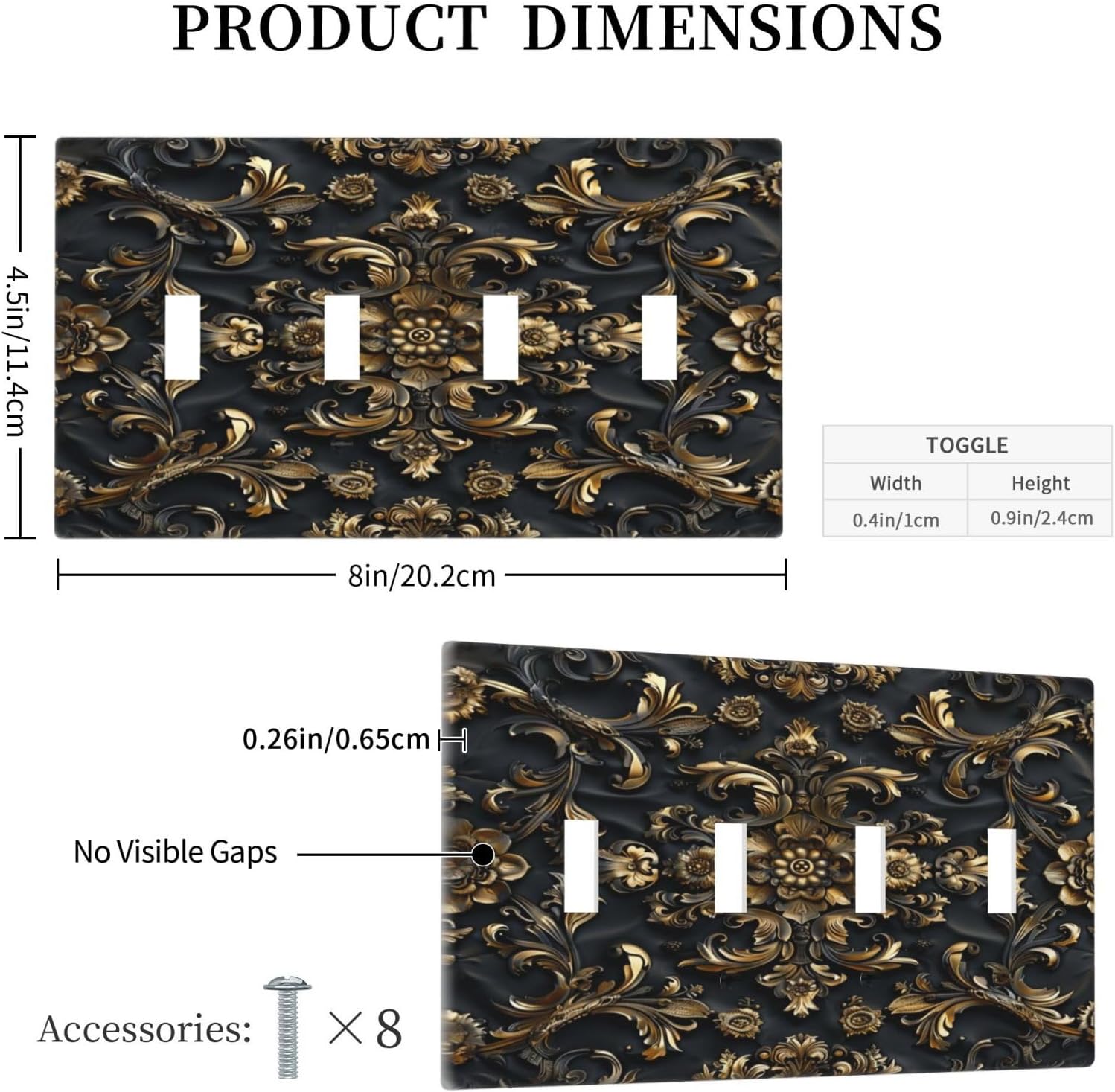 Decorative Switch Covers Plate Rococo Vintage Black Golden Leaf Morris Vine 4 Gang Artistic Wall Plate Unique Quad Toggle Light Switch Plate Jumbo Faceplate for Bedroom Home Decor