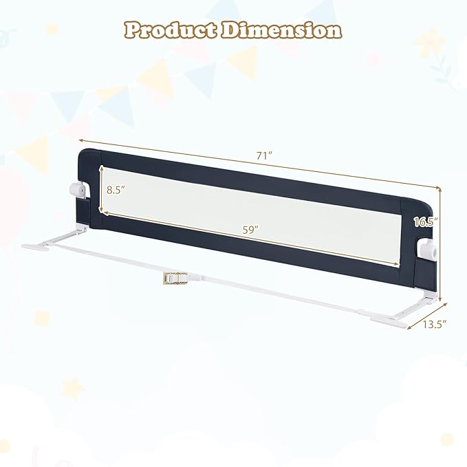 - [ Protect Your Baby's Safety ]: This extra-long bedrail is 71 inches long for added safety. When your kids sleep alone at night, it can provide them with the best protection and safe sleeping environment. It is your kid's safety guard, so you don't have to worry about your baby falling off the bed.