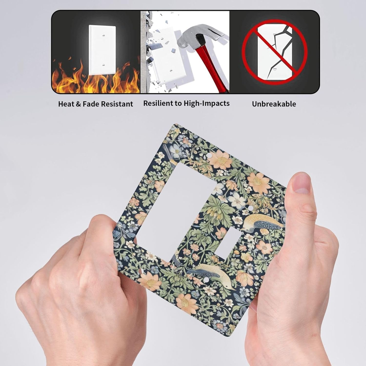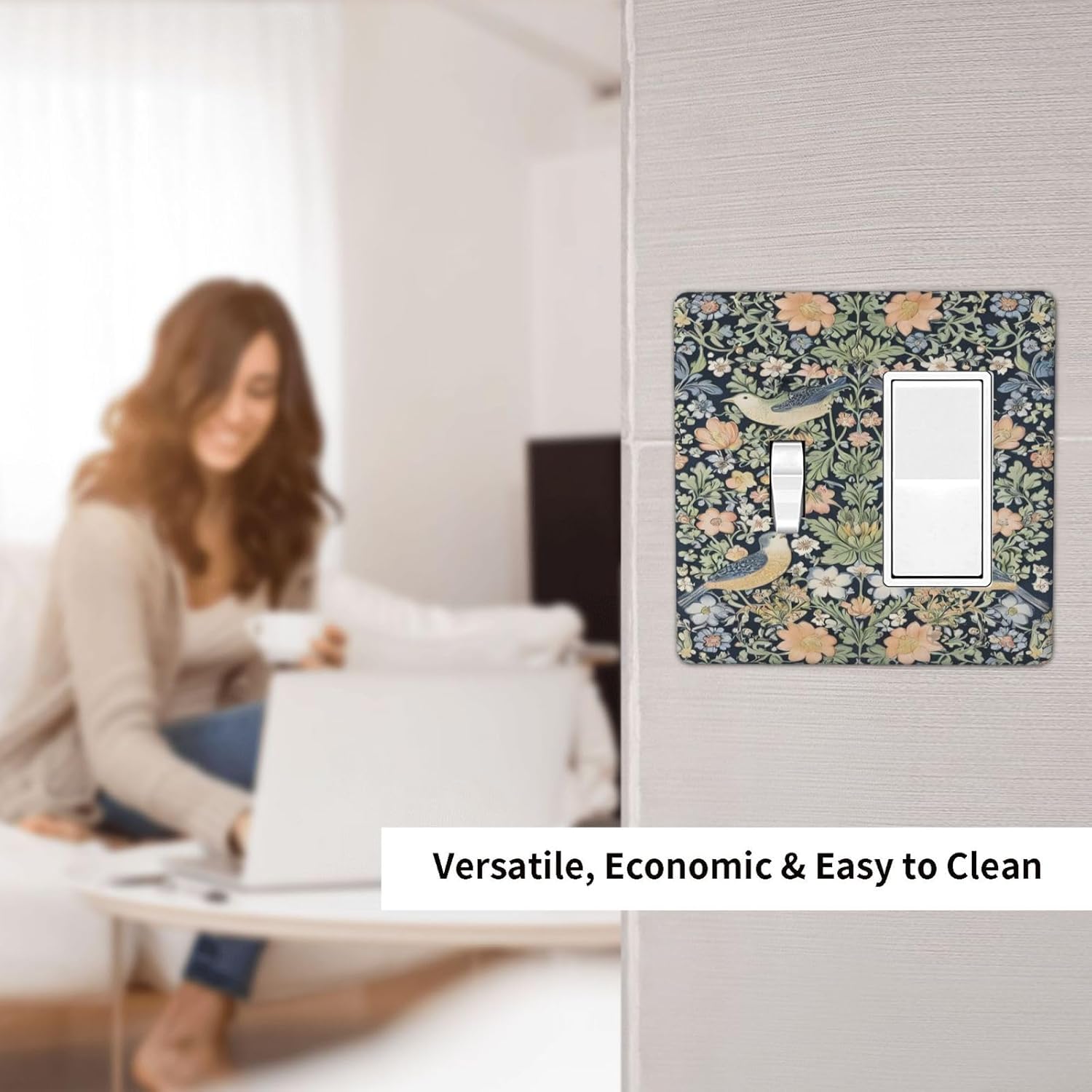 Decorative Outlet Covers Rustic Morris Birds Green Leaf Flower 2 Gang 1 Gang Wall Plate Cover Single Toggle Rocker Combo Light Switch Cover Plate Face Plate for Country Bedroom Decor