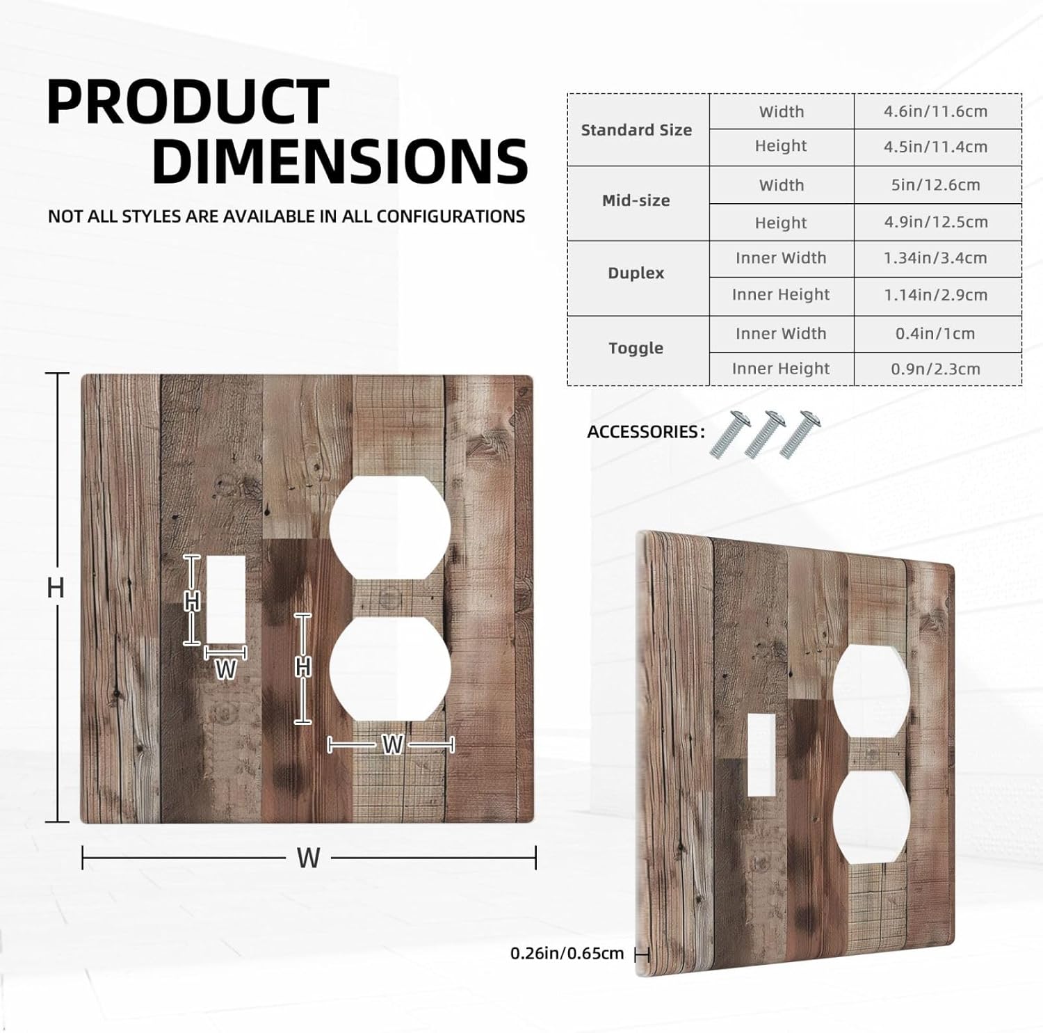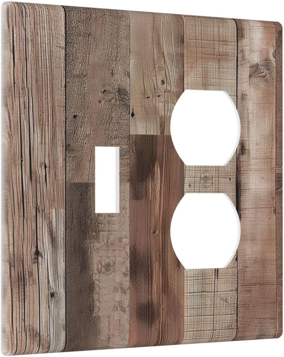 Decorative Outlet Covers Retro Wood Plank Vintaga Wooden Board 2 Gang Wall Plate Cover Single Toggle Duplex Combo Two Switch Light Switch Cover Plate Jumbo Dual GFCI Faceplate