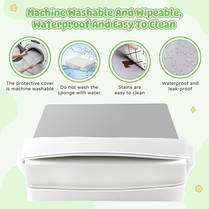 - 【Waterproof and Easy to Clean】The high-elastic TPU film cover is waterproof, repelling spills and protecting the sponge from moisture, which is more wrinkle-resistant than ordinary PU leather and is an excellent fabric for maternal and child products. Cleaning is a breeze—just wipe with a damp cloth or baby wipe to remove stains.